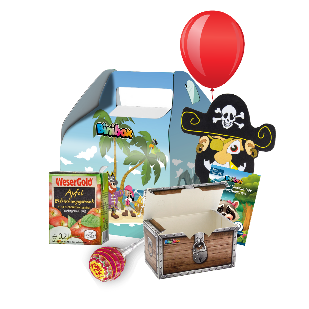 Die Binibox ist die beliebte Kindermenübox die den einfachen Restaurantbesuch zu einem abenteuerlichem Erlebnis macht. Der Gastronom legt nur die zubereitete Speise rein und fertig ist das perfekte Kindermenü inklusive WeserGold Trinkpäckchen, Spielzeugüberraschung, einem Chupa Chups Dauerlutscher und einem Luftballon