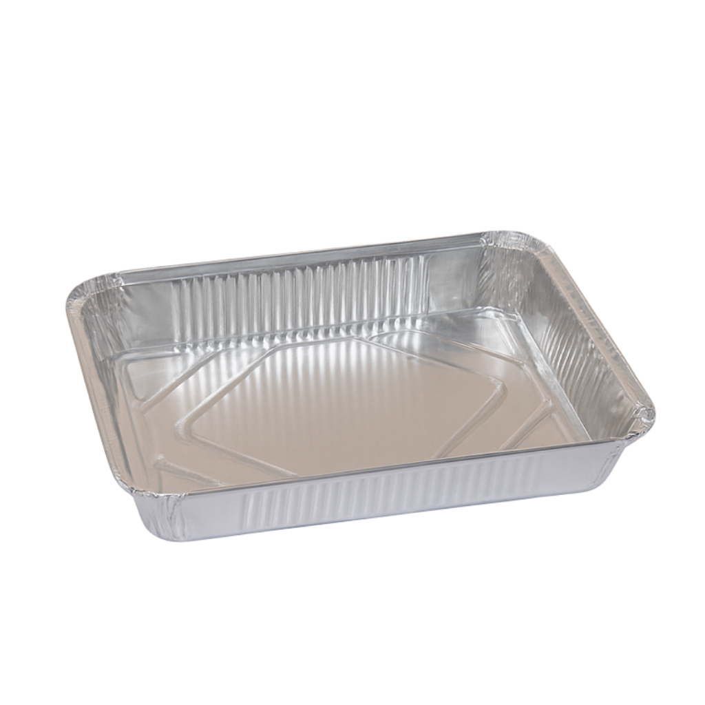 Die Aluminiumschale Modell R1G-217 ist durch ihre große rechteckige Form ideal für Aufläufe, Kuchen, Gebäck und Catering-Gerichte. Dank des flachen Profils bietet sie eine perfekte Lösung für Gastronomie, Buffets und Take-away.