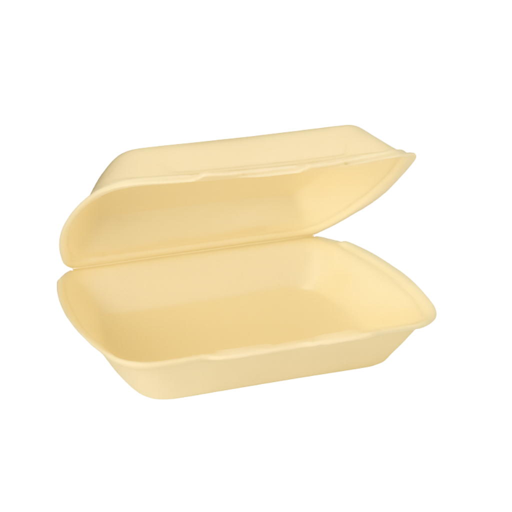Die Menübox Inde Plastik Menübox ungeteilt in klassischer Champagnerfarbe ist die ideale To-Go-Verpackung für Imbisse, Foodtrucks und Lieferservices. Dank ihres ungeteilten Formats eignet sie sich perfekt für Burger, Pasta, Reisgerichte oder andere Hauptspeisen. Hergestellt aus extrudiertem Polystyrol überzeugt die Box durch Stabilität, gute Isolierung und sicheren Verschluss. Praktisch stapelbar und lebensmittelecht – eine zuverlässige Verpackung für den professionellen Einsatz.