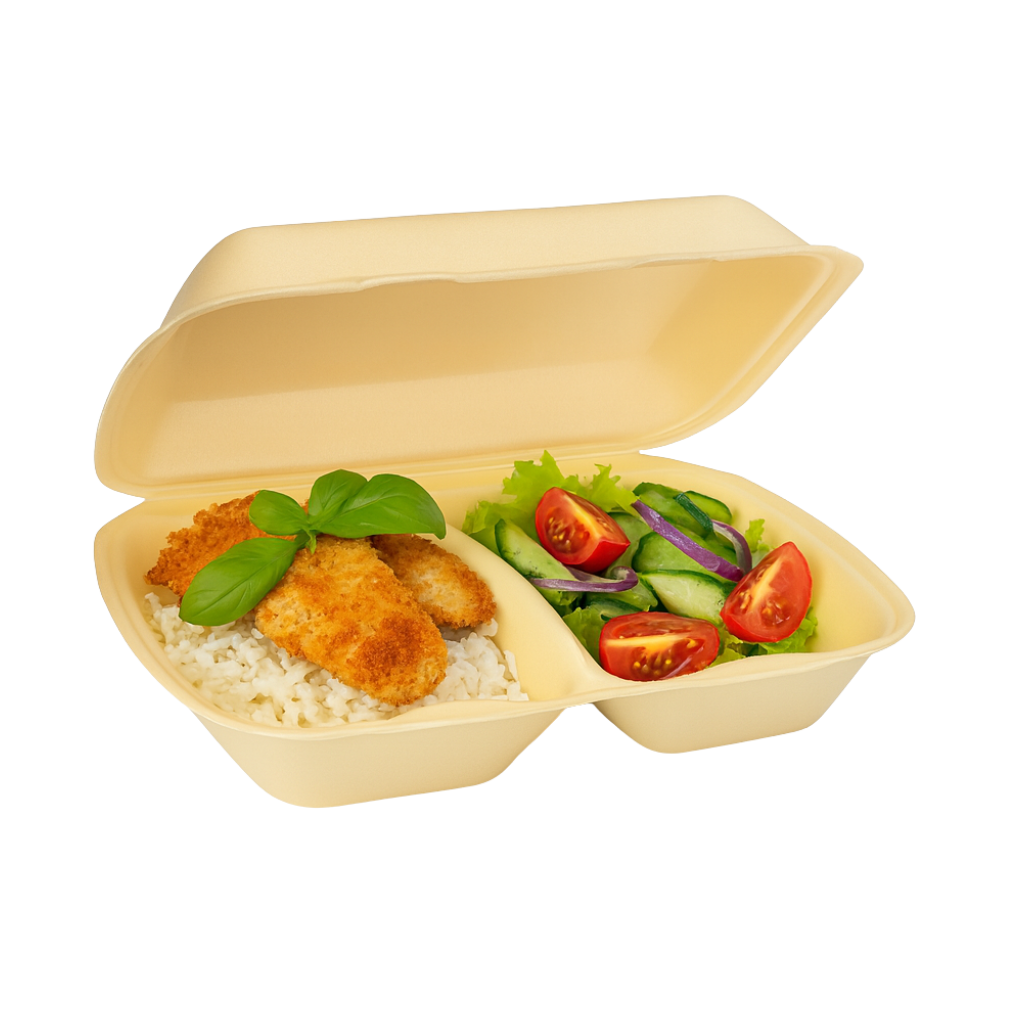 Die Menübox Indeplastik zweigeteilt bietet mit zwei getrennten Kammern die optimale Lösung, wenn Beilagen und Hauptspeisen getrennt bleiben sollen. Ob Curry mit Reis, Fleisch mit Gemüse oder Pasta mit Salat – dank der stabilen Konstruktion und der hohen Isolierfähigkeit bleibt jedes Gericht frisch und appetitlich. Die Box ist lebensmittelecht, leicht stapelbar und erfüllt gängige Hygieneanforderungen – perfekt für Restaurants, Caterer und Lieferdienste.