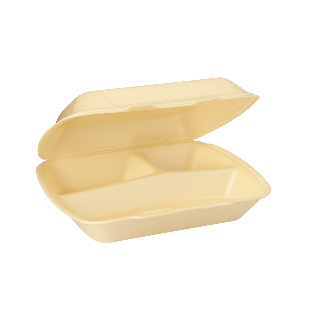 Die Menübox Indeplastik dreigeteilt mit drei separaten Fächern ist die ideale Wahl für vielfältige Gerichte im Take-Away-Bereich. Hauptspeise, Beilage und Sauce lassen sich hygienisch getrennt verpacken und sicher transportieren. Durch die glatte Oberfläche und die hohe Stabilität der Polystyrol-Box bleibt der Inhalt ansprechend und warm. Ideal für Gastronomie, Lieferservice und Events – eine saubere Lösung für vielseitige Menüs.
